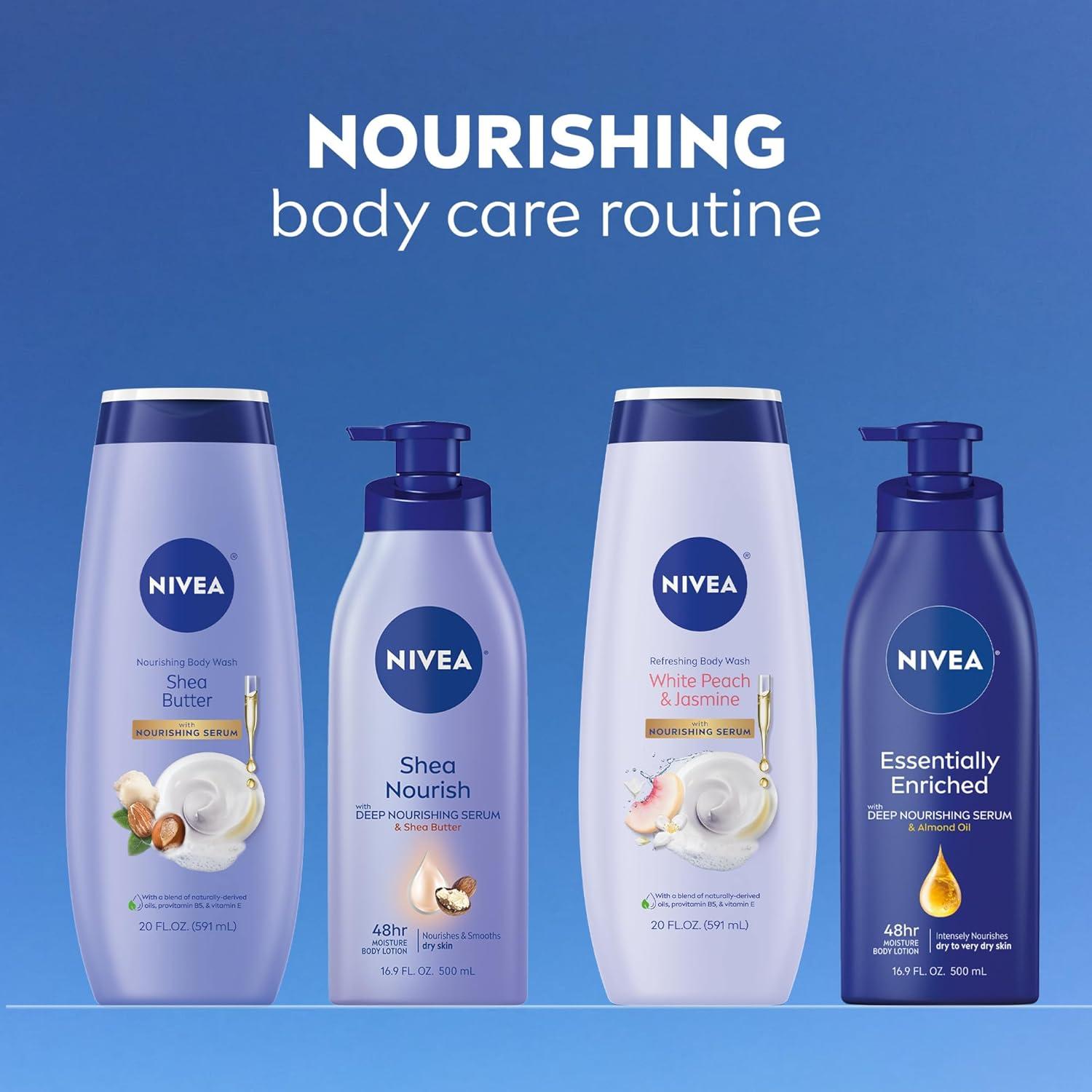 NIVEA Nourishing Shea Butter Body Wash, 20 Fl Oz Bottle Refreshing White Peach and Jasmine Scented Body Wash, 20 Fl Oz Bottle, Skin Care Set with Provitamin B5 and Vitamin E(Peach Jasmine)